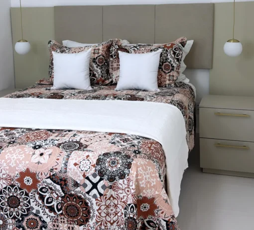 O Cobre Leito dupla face da Linha Bouti com Porta Travesseiro estampado é 100% costurado, seu tecido é 100% poliéster prático e confortável, fácil de manter e não precisa passar. Tecido com toque super macio.