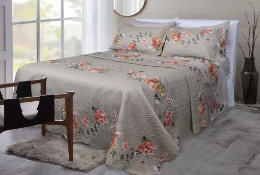 O Cobre Leito dupla face da Linha Realce com Porta Travesseiro estampado é 100% costurado, seu tecido é 100% poliéster prático e confortável, fácil de manter e não precisa passar. Tecido com toque super macio.