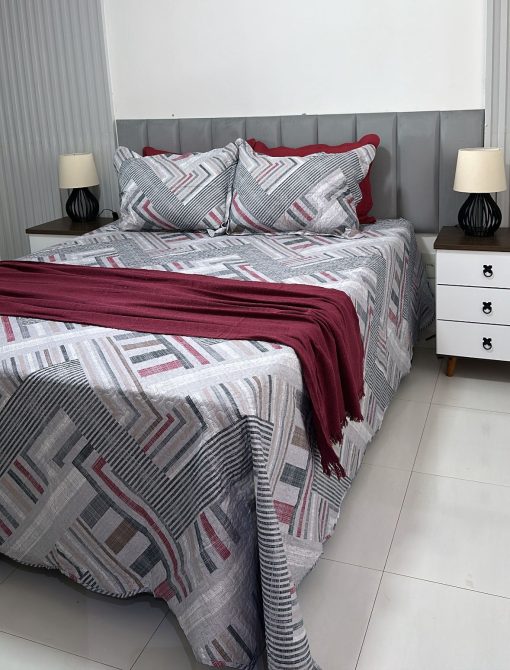 O Cobre Leito dupla face da Linha Bouti com Porta Travesseiro estampado é 100% costurado, seu tecido é 100% poliéster prático e confortável, fácil de manter e não precisa passar. Tecido com toque super macio.