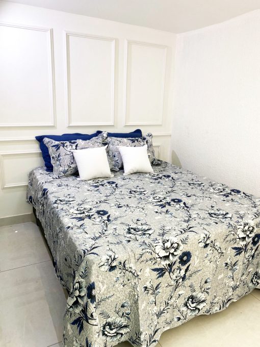 O Cobre Leito dupla face da Linha Bouti com Porta Travesseiro estampado é 100% costurado, seu tecido é 100% poliéster prático e confortável, fácil de manter e não precisa passar. Tecido com toque super macio.