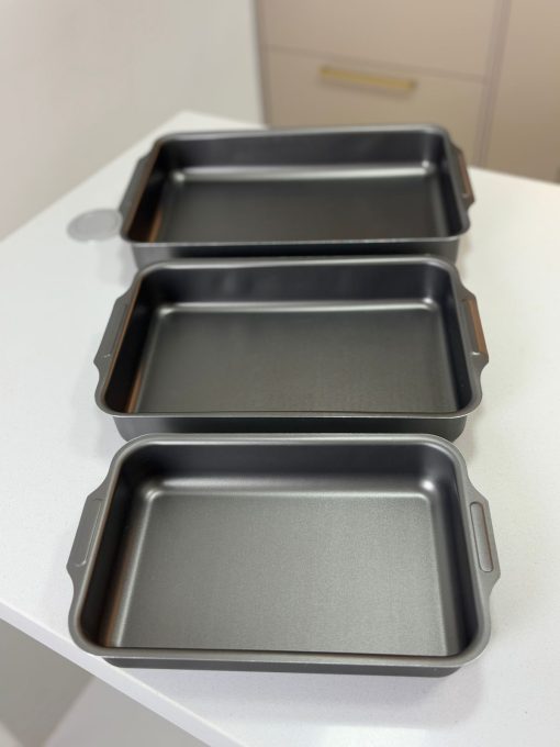 Conjunto de Assadeiras Retangulares Altas com Abas 03 Peças – Alumínio Antiaderente