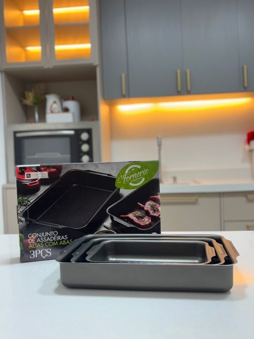 Conjunto de Assadeiras Retangulares Altas com Abas 03 Peças – Antiaderente