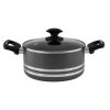 1. Panela de pressão com acabamento interno e externo em antiaderente de 5 camadas.