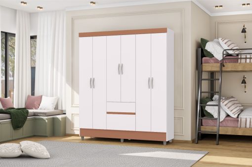Conheça o Guarda-Roupa Ideal Plus: Compacto, funcional e perfeito para manter tudo organizado no seu dia a dia! Com 6 portas e 2 gavetas, ele oferece muito espaço interno, são 7 prateleiras ideais para guardar roupas, sapatos e outros pertences. Além disso, conta com um espaço bem localizado para cabides, facilitando o acesso às suas peças preferidas. A montagem pode ser feita em duas posições, adaptando-se às suas necessidades. As gavetas possuem corrediças metálicas, garantindo durabilidade, enquanto os puxadores oferecem uma pegada confortável. Os pés elevados protegem da umidade, e as cores modernas são pensadas para valorizar o ambiente e proporcionar uma excelente experiência no seu quarto!