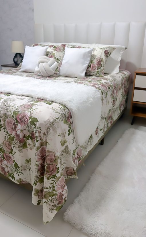 Com uma atmosfera romântica e estampas com cores alegres e vivas, esse jogo de cama duplo é lindo, macio, resistente e com caimento perfeito, seu quarto nunca mais será como antes.