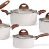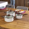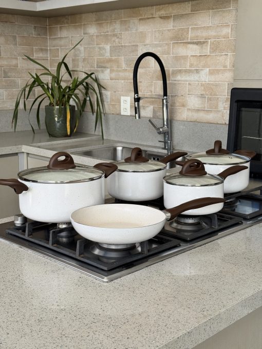 COMPOSIÇÃO: 1 Caçarola com Tampa – Diâmetro: 22 cm | Altura:10,5 cm | Capacidade: 3,55 litros – 1 Caçarola com Tampa – Diâmetro: 20 cm | Altura: 9,5 cm | Capacidade: 2,55 litros – 1 Panela com Tampa- Diâmetro: 18 cm | Altura: 9 cm | Capacidade: 1,55 litros – 1 Panela com Tampa – Diâmetro: 16 cm | Altura: 8 cm | Capacidade: 1,25 Litros – 1 Frigideira – Diâmetro: 22 cm | Altura: 4,5 cm | Capacidade: 1,1 litros