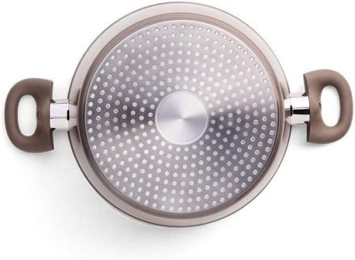 MATERIAIS: A linha Granada possui corpo de 2,5mm de espessura em alumínio com pintura siliconada garantindo a durabilidade do produto, os cabos, alças e pegadores possuem acabamento soft touch, não esquentam e proporcionam um manuseio confortável.