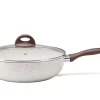 ANTIADERENTE: O revestimento cerâmico não deixa o alimento grudar, permitindo o uso de menos óleo facilitando a limpeza e é livre de metais pesados, e elementos prejudiciais a saúde (PFOA free), por isso possui classificação A (ótima) no Inmetro. No jogo, as panelas e caçarolas possuem antiaderente Pro Ceramic Premium e a frigideira do conjunto possui o revestimento Mineral Resist com partículas de cerâmica ultra resistente ao uso em altas temperaturas.