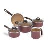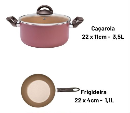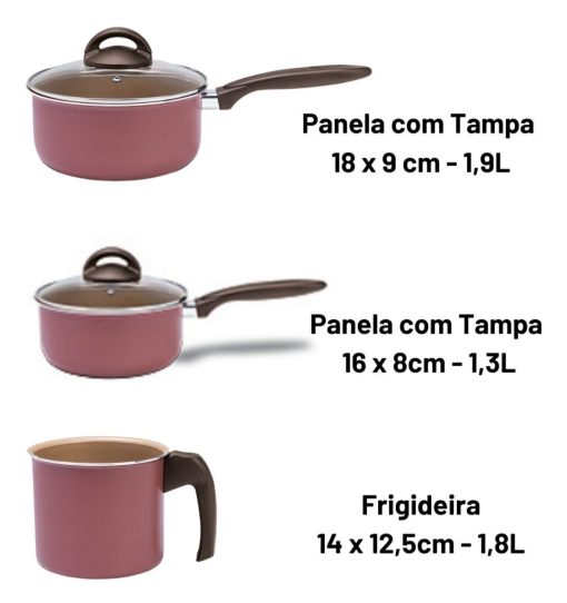 Conjunto de Panelas 5 Peças Naturall/Brinox tem estrutura de alumínio que distribui o calor de forma homogênea. Os cabos e alças são em baquelite com no mínimo 50% de resíduos reutilizados. Os poméis também servem como apoio de utensílios. O revestimento Pro-flon é um antiaderente que reduz a necessidade do uso de óleo no preparo de alimentos, evita que eles grudem e facilita a limpeza, além de ser PFOA Free. O jogo integra o Projeto Green Planet Brinox.