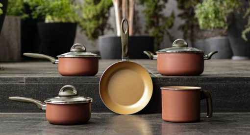 PRO-FLON PREMIUM: A tecnologia antiaderente Pro-flon Premium do Conjunto de Panelas 5 Peças Naturall possui três camadas de alta qualidade, tornando-o ultra resistente durante o cozimento e não deixando o alimento grudar. O Pro-flon permite a redução do uso de óleo para cozinhar e facilita a limpeza. Além disso, é livre de metais pesados e elementos prejudiciais à saúde (PFOA free), com classificação A (ótima) no Inmetro. É mais saúde e segurança para sua família.