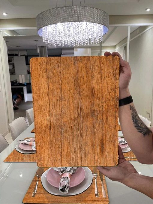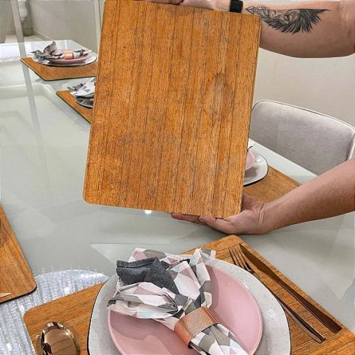 Kit Mesa Posta – Sousplast Para Pratos e Porta Copos – Amadeirado