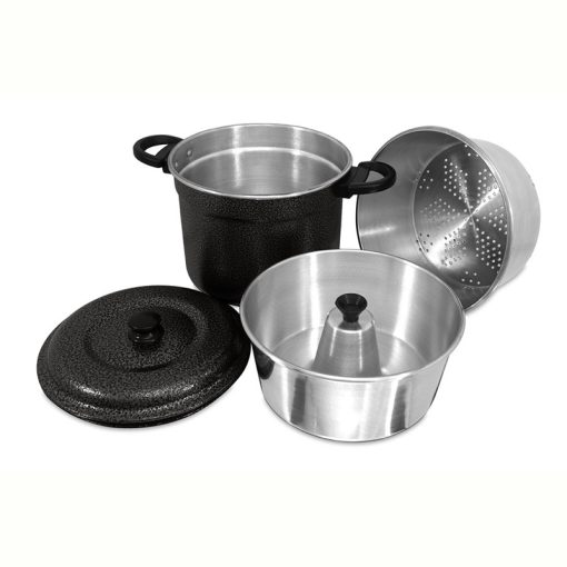 Kit De Banho Maria, Forma de Pudim e Cuscuz – Panela de Alumínio 3 em 1 Multiuso Preto Craqueada