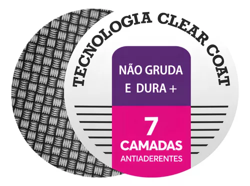 Além disso, as Panelas de Pressão são revestidas, internamente e externamente, por 7 camadas de antiaderente tecnologia Clear Coat, evitando que o alimento grude na panela e facilitando a limpeza. Ainda possuem cabo de baquelite, material que garante um manuseio confortável e seguro, evitando queimaduras.