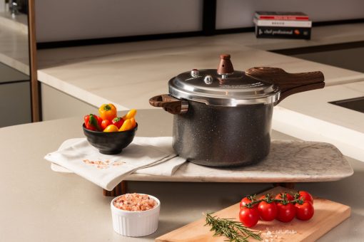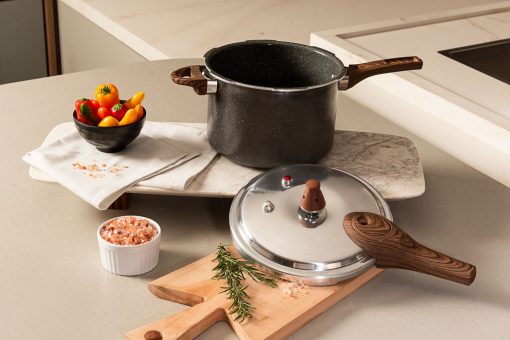 Com 2 anos de garantia e 4 dispositivos de segurança (uma trava, duas válvulas de trabalho e um escape de segurança), a panela de pressão da linha Pressure conta com estrutura de alumínio que cozinha os alimentos por igual e mais rápido, dissipando melhor o calor, proporcionando um maior aproveitamento de nutrientes dos alimento.