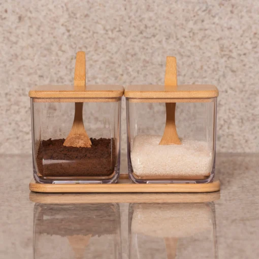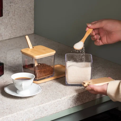 Com design natural e contemporâneo, o Porta Condimentos Brisa é ideal para armazenar açúcar, sal, grãos ou especiarias, mantendo tudo à mão e com uma apresentação impecável. A bandeja e os acessórios em bambu envernizado oferecem resistência ao mofo e à umidade, enquanto os potes em Poliestireno (PS) transparente garantem leveza, durabilidade e fácil visualização do conteúdo.