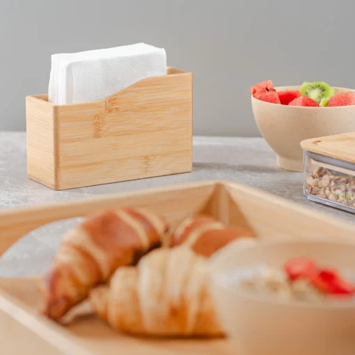 Com linhas simples e harmônicas, o Porta Guardanapos Brisa Coza alia estética e utilidade. Sua estrutura foi pensada para garantir estabilidade e praticidade no uso, mantendo os guardanapos sempre organizados. O visual natural do bambu adiciona um toque acolhedor à mesa, transformando cada refeição em um momento especial.