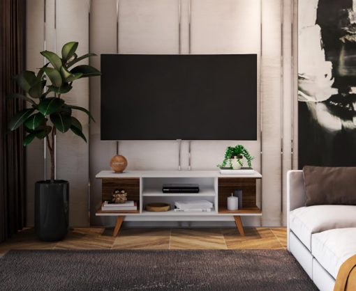O Rack Aura conta com design minimalista destaca-se pela combinação equilibrada de estilo e praticidade. Com pés em madeira maciça, é uma solução elegante e funcional para organizar e exibir eletrônicos, bem como para compor a decoração na sua sala de estar.